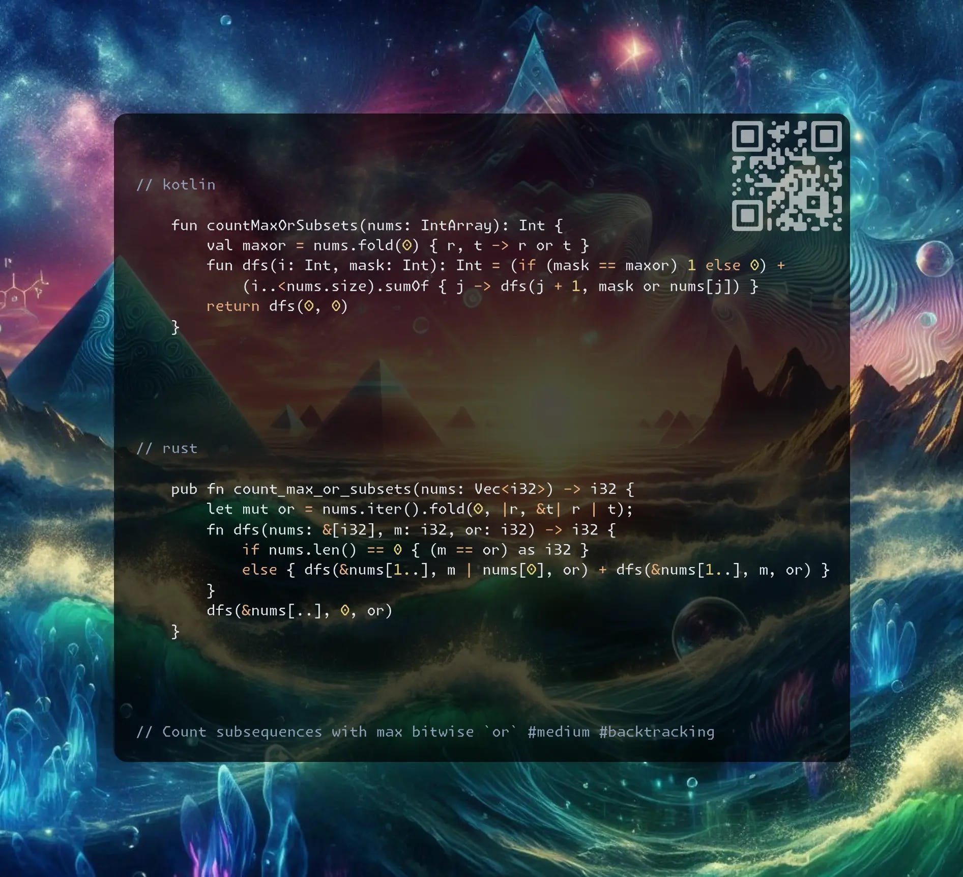 else { dfs(&nums[1..], m | nums[0], or) + dfs(&nums[1..], m, or) }